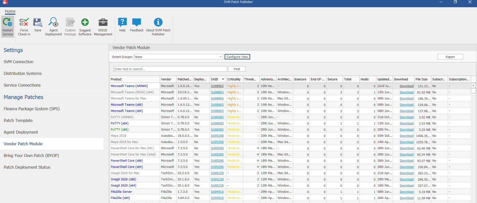 Clicking on the Download link in the VPM grid will download the patch.