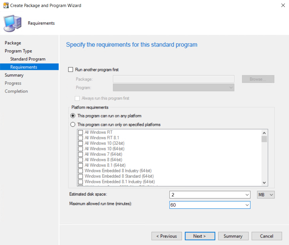 5. On the Program Type page, ensure Standard Program is selected and click Next .
